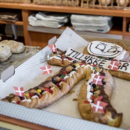 "I vores bageri kan du udforske det mest omfattende udvalg af friskbagt brød i byen. Hver formiddag bager vi friske rundstykker hver halve time, og vi bager friskbagt brød i stenovne fra åbningstid og det meste af dagen.